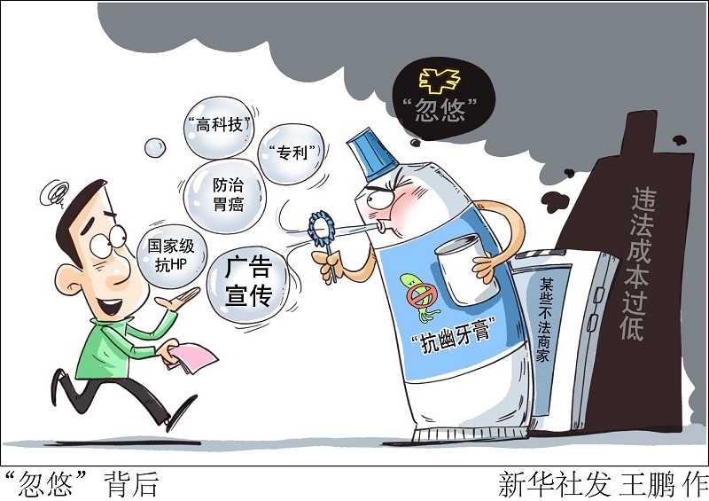 记者从国家药监局获悉,幽门螺旋杆菌定植在胃中,无法通过用牙膏刷牙预防或治愈。目前市场在售的所谓“抗幽牙膏”大部分都是打着“专利”“高科技”幌子,通过在部分网络平台大量投放虚假广告蒙骗消费者。