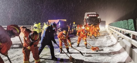 通过此次拉动演练,全面检验了队伍应对低温雨雪冰冻灾害事故的应急处置能力。演练假设二广高速朝阳一号隧道北因积雪导致交通拥堵,大量车辆和人员滞留。支队指挥中心接到报警后,迅速调集泽州县凤城路消防救援站、新市东街特勤站6车35人,携城市道路铲冰除雪类、道路交通事故处置类器材以及防寒物资前往处置。最终经过30多分钟的协同奋战,成功除雪融雪约6公里,严重积雪结冰路段基本清理完毕,出行路况得到显著改善,为广大人民群众提供了良好安全的交通环境。 (张彦 曹梦露)