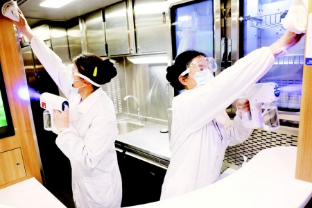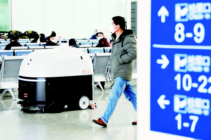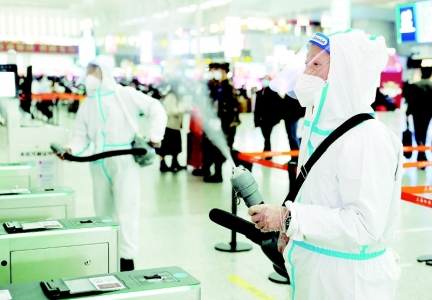 2022年春运期间,一批具有消毒防疫功能的科技产品在各地运输部门投入使用,织密疫情防控网,保障旅客出行安全。