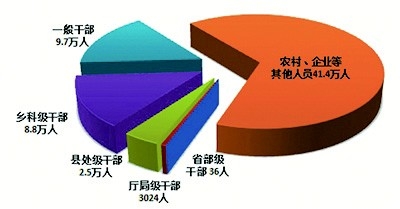 2021年,全国纪检监察机关共接收信访举报386.2万件次,处置问题线索182.6万件,谈话函询34.4万件次,立案63.1万件,处分62.7万人(其中党纪处分52.4万人)。处分省部级干部36人,厅局级干部3024人,县处级干部2.5万人,乡科级干部8.8万人,一般干部9.7万人,农村、企业等其他人员41.4万人。