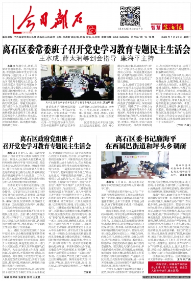 离石区政府党组班子召开党史学习教育专题民主生活会