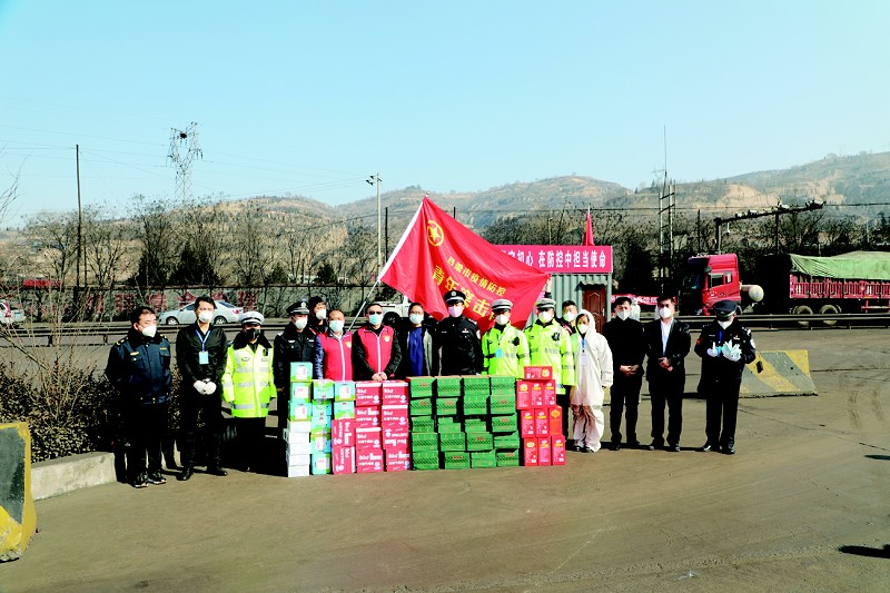 离石区环卫中心、交口街道办、交口村委、吕梁武警支队直属大队各个疫情防控检查点,吕梁市公安局、离石区治超检测站、柳林交警大队高速东口疫情防控检查点及临县交警大队高速南疫情防控检查点等一线单位都留下青年突击队的身影,并送上口罩、84消毒液、一次性检查手套等防疫物资,为奋战在疫情防控一线的坚守者献上爱心和祝福,解决了抗疫一线的燃眉之急。