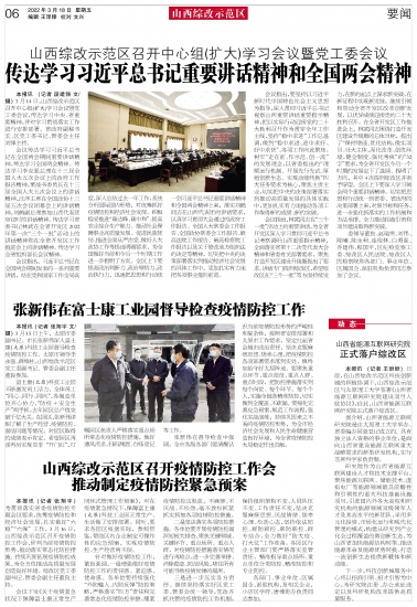 山西综改示范区召开疫情防控工作会 推动制定疫情防控紧急预案