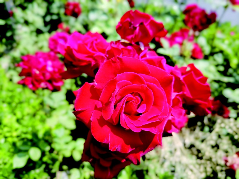 太原植物园月季园栽培有红宝石、满天星、香水月季、法兰克福、淡雪等多个种类的月季,约5万株。进入月季盛放期,游人徜徉在花的海洋中,可感受月季的美丽多姿。