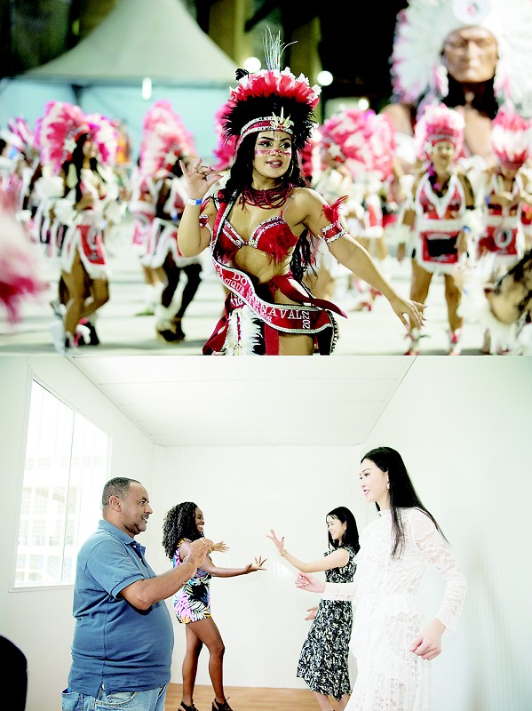 图⑥:上图为表演者在巴西里约热内卢桑巴之城参加狂欢节假期庆祝活动;下图为两名来自中国的环球小姐在巴西里约热内卢学习桑巴舞。 新华社发