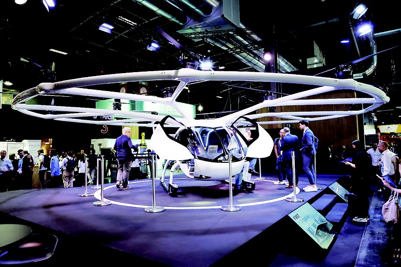 近日在巴黎举行的“科技万岁”科技创新展览会上,德国沃洛科普特公司展出了一架纯电动直升机,它采用并列双座设计,安装了18个旋翼,仿佛一张平铺延展的白色蜘蛛网。