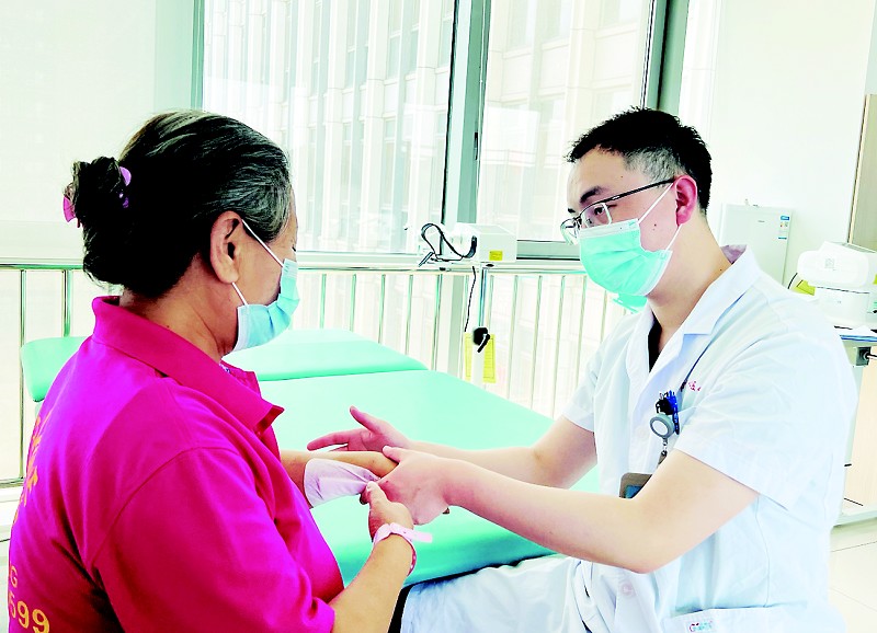为提升服务质量,医院各科室了解患者需求,选取大家反映的突出问题,重点攻关。骨科在发展特色足踝外科的基础上,引进人才、加大进修,在服务方面全面提升。考虑到骨科病人,尤其是老年人功能复健很重要,所以,骨科利用医院的连廊开设了复健室。骨科主任杜虎羽说:“运动康复技师会帮助术后患者进行及时复健,保证患者术后功能的康复。”