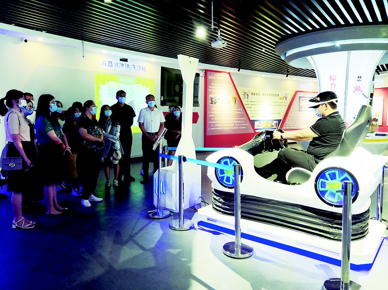 随后,参观者来到体感游戏区,在游戏中认识毒品。