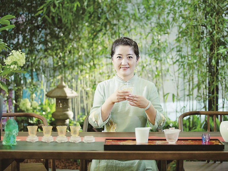 初见丁丽,她身着古色古香的衣裙坐于茶台内,装茶、润茶、冲泡、运壶、分杯,行茶过程行云流水,每一个环节都体现着茶文化的奥妙。