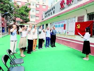6月26日,太原市铁匠巷社区在社区小广场举办“讲好红色故事、传承红色基因”主题活动。铁匠巷社区党委书记杜海桃带领党员们重温了入党誓词。