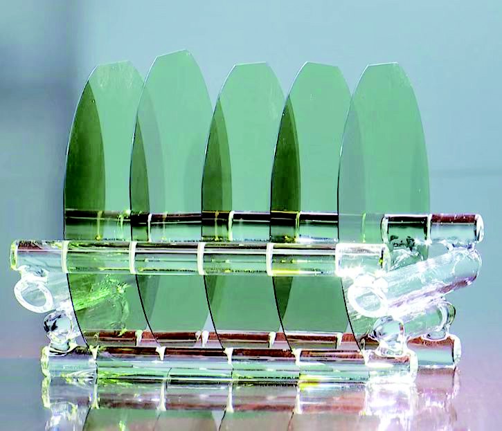 6月14日,在山西烁科晶体有限公司(以下简称“烁科晶体”)一层展厅,一个个像有机玻璃的圆形“工艺品”引起了人们的注意。工作人员介绍,这是碳化硅晶片,厚度0.5毫米,约为5张A4纸的厚度,直径4英寸或6英寸,和一张CD光盘差不多。因为太薄,只能夹在两层透明的“玻璃”之间供观赏。就是这样一个薄片,市场售价高达2000美元,还经常“一片难求”。