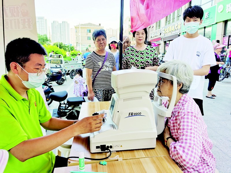 7月17日,太原市晋源区义井二巷社区举办了“暑期视力健康筛查”活动,邀请专业机构,免费为社区老年人进行视力检测。