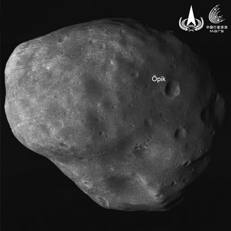 据国家航天局最新消息,近期,天问一号运行团队抓住环绕器与火卫一距离较近的时机,利用高分辨率相机对火卫一成像,获得了“满月”状态的清晰影像。