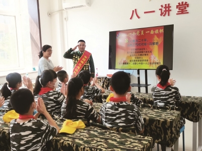 8月4日,省军区社区邀请全国模范退役军人、有着20多年反扒经验的冯黎明为东华门小学的学生上了一场生动的防护知识讲座。冯黎明从“处于险境,紧急求援”“虚张声势,巧妙周旋”等八个方面,教会同学们在身处险境时如何求助,以及遇到坏人威胁时应当如何“智取”。同学们听得全神贯注,受益匪浅。 记者 田勇 文/摄