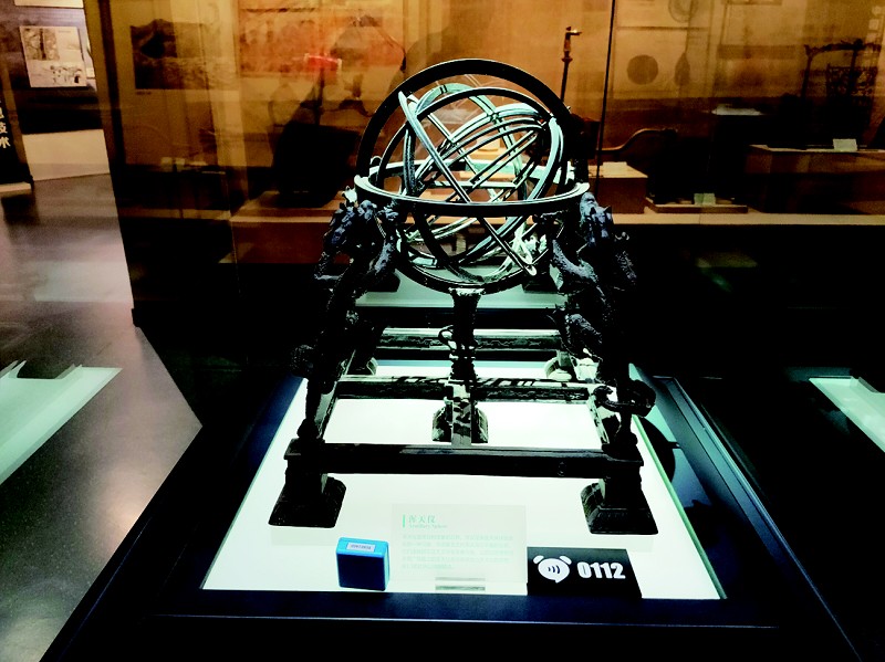 在博物馆东广场看到的浑天仪,是我国东汉天文学家张衡在前人的研究基础上改进而成,由浑仪和浑象组成。浑仪是测量天体球面坐标的仪器,浑象是用来演示天象的仪表。