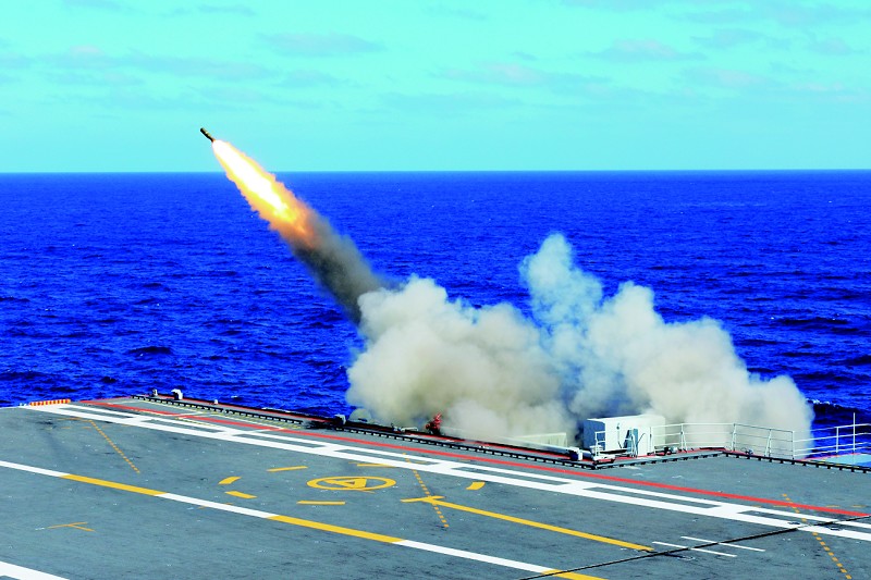 一次海上训练期间,山东舰正在进行实弹射击训练。靶机刚一出现,雷达部位就迅速将其捕获。二级军士长王玉伟紧盯目标参数,准确分析判断,果断按下发射按钮,一击命中。