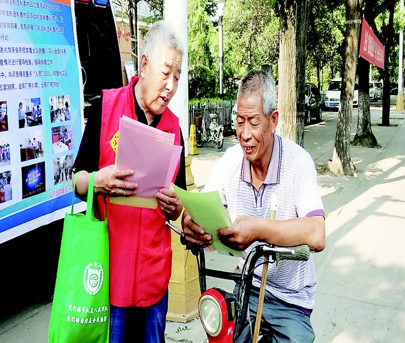 73岁的史福太是双塔社区老年协会会长,平时会利用黑板报宣传扫黑除恶,防火、防盗、防汛等知识,他还是小区治安巡逻队队长。在他的带动下,协会成员郭天录、令狐富胜、王世产等人也成为参与社区管理的“银发志愿者”。