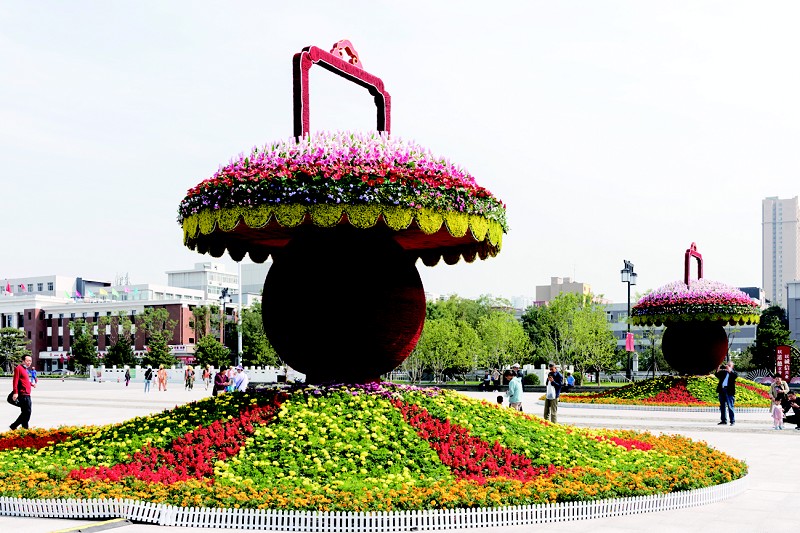 三是城市主干道花卉布置。各城区景观花卉布置以地栽花卉为主,搭配立体景观花坛,共计布置立体景观花坛28组、花钵500余个、花箱4000余个,栽植花卉160万余株。