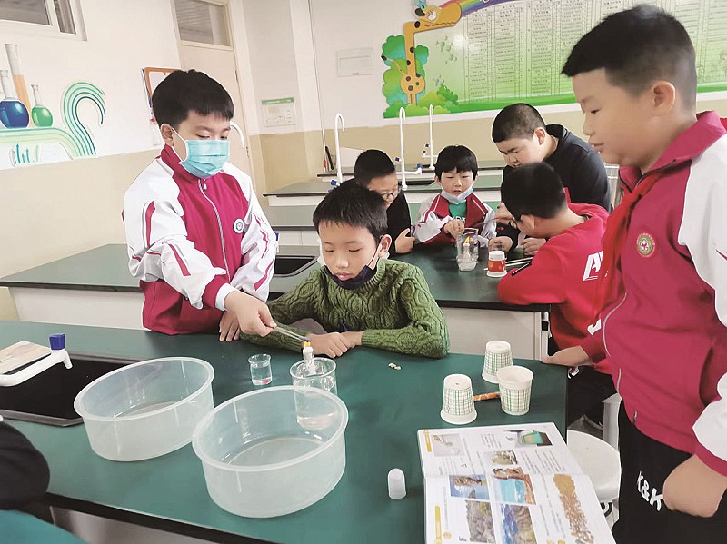 “减作业、减负担,课堂作为学校教育教学最基本的形式,也是减负的支撑和提质增效的关键,学生发展核心素养是在每一节课的基础上逐步形成的。”义暄表示,在两个学期的教学中,学校进行思维课堂教学重构,以高阶思维课堂为发力点,思维训练点为课堂评价要素;变革传统课堂,转变教与学的方式,把课堂还给学生,让学生成为课堂的主人。《以空气为动力的小车》《星空对比图》《趣味堆肥》《弹力玩具》《制作地球内部模型》《制作八大行星模型》……根据不同的年级,学生们在老师的引导下进行不同层次的科学探究,只看课程名称,都能感觉到这些课堂十分有趣。例如在《肥沃的土壤》一课中,学生们通过观察了解到动植物死后会变成土壤的一部分,然后在老师的引导下亲手制作肥料袋。