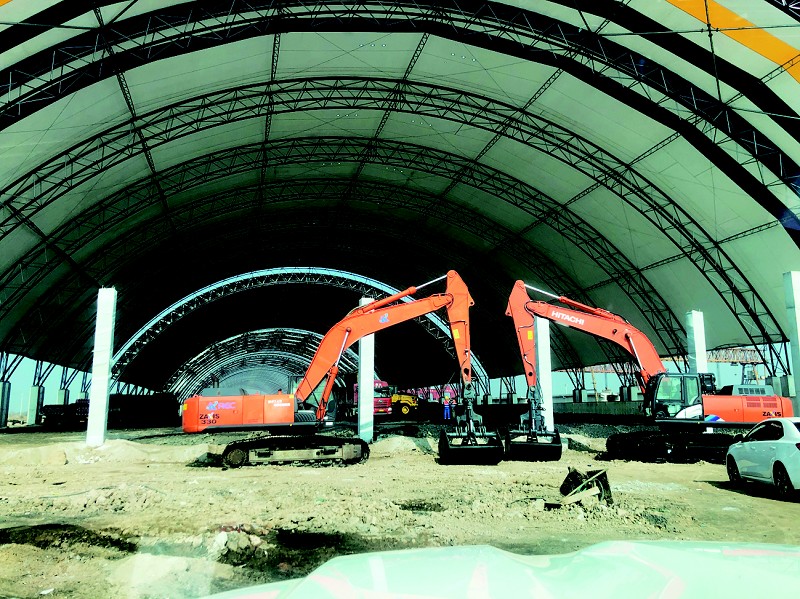 “为响应国家环保政策,所有露天作业造成的粉尘污染均需进行作业场改造封闭,环保料仓封闭建筑需求量日益增加。为更好地适应市场,我们研发并投入使用创新型的‘H型钢实腹拱架膜材’,极大地满足了市场的全新要求。”科顿环境负责人耿彪介绍。