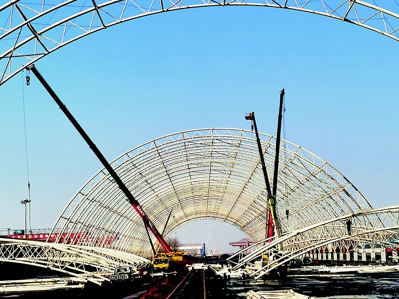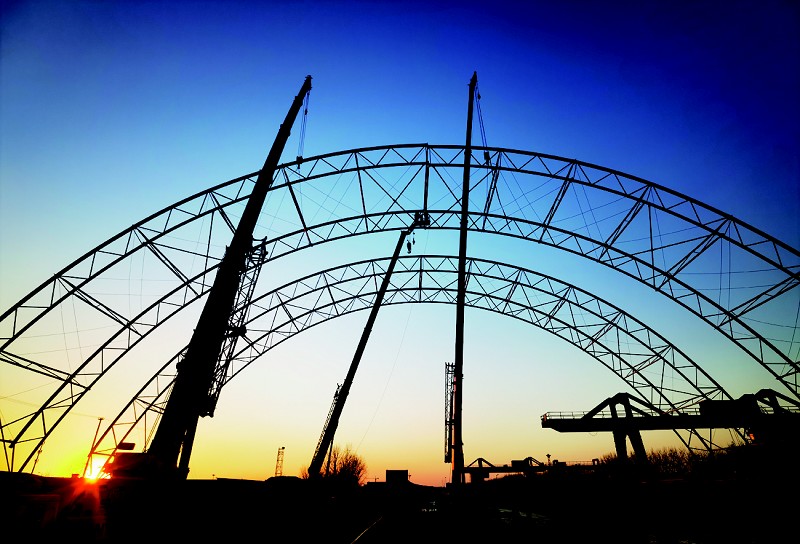 据介绍,目前市场上常见的封闭结构大都存在不少问题,如:现场制作的管桁架占用时间长,结构稳定性差、空间利用率低等;螺栓球网架二次防腐工作困难,防腐和后期维护成本高;焊接球网架防腐成本高、高空作业较多,与此同时,料仓项目建设与业主正常生产之间交叉作业、建筑规模大、总投资高等矛盾存在。市场亟待研发出一种真正适合散料堆场的封闭结构和围护材料,以满足本行业造价低、全生命周期安全系数高、免维护、建设速度快等需求。
