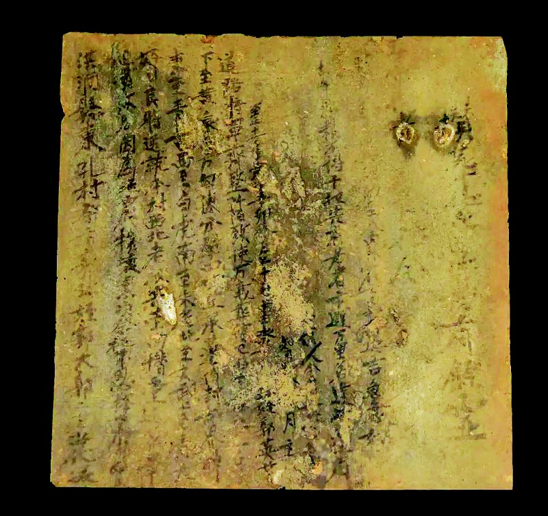 最有价值的是一件买地券。买地券呈方形,青砖质,边长0.3米、厚0.05米,墨书约200字,内容已不易辨识。