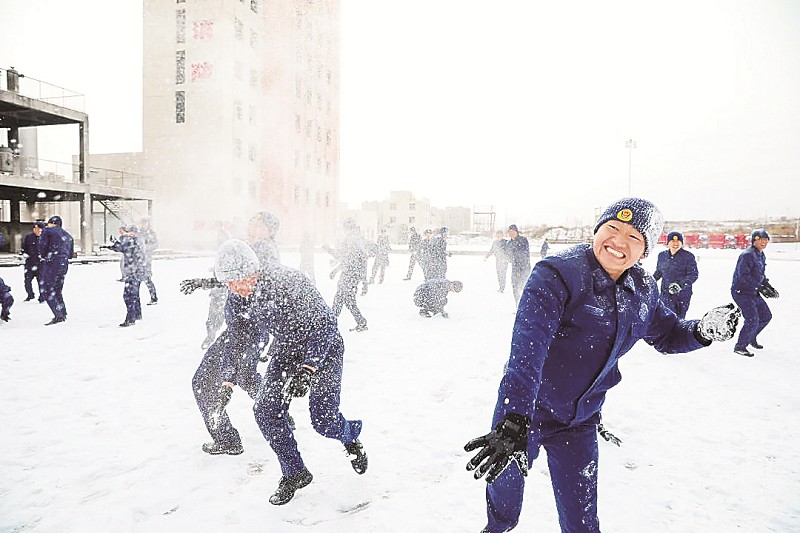 腾空而起的雪球,漫天飘洒的雪片,越打越近的消防员,喊声震天的口号,被冻得通红却掩饰不住的笑脸,这场来自一中队和二中队的比拼,释放了大家对冬天的所有激情,瞬间点燃了训练场。