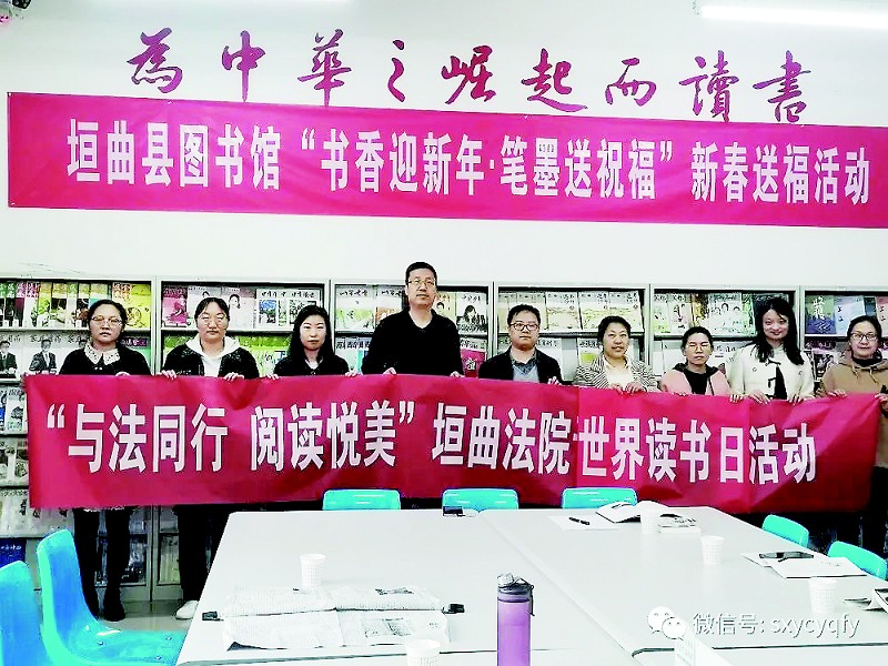 垣曲法院开展以“与法同行、阅读悦美”为主题的世界读书日活动。干警们在垣曲法院青年协会会长聂峰的带领下前往县图书馆,仔细寻找、相互推荐优秀书目,并结合自身体会,诉说各自独有的阅读感悟,在分享交流中开拓视野、增长见识,掀起了读书学习的活动热潮。
