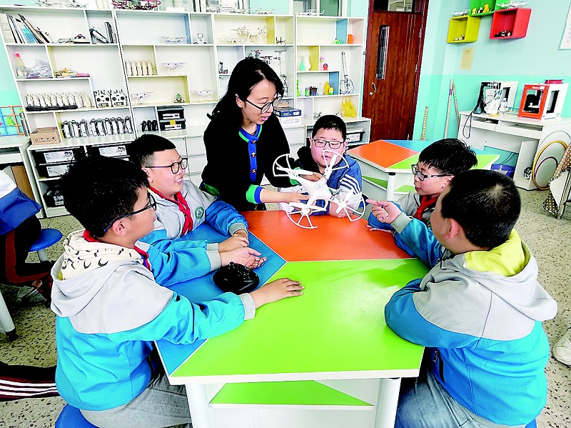 在课程中,创客教师李想为学生讲解无人机基本常识,如发展历程、用途、分类、组成、飞行原理等。“以前,我以为无人机就是用来航拍摄影的,学习之后才知道无人机在生活中应用十分广泛,比如在森林防火、高空灭火、应急通讯等领域,无人机就可以代替人们承担起繁重而危险的工作。”学生赵泽楠说。学生们感叹着无人机的神奇之处,渴望将来能当一名合格的飞行小能手。