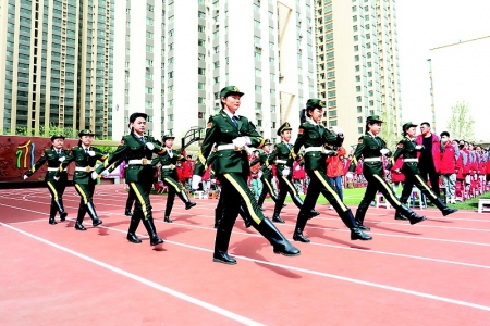国旗仪仗队迈着整齐有力的步伐,护卫五星红旗走向升旗台,伴随着国歌奏响,鲜艳的五星红旗冉冉升起。近日,太原市迎泽区双东小学特别邀请山西励教国防教育基地开展了“大国少年,未来有我”国防教育训练周活动。军体拳、97式火箭筒发射、手语操展示彰显了同学们昂扬向上的精神风貌;集合列队,汇操表演,各方队英姿飒爽,同学们动作规范,豪情万丈,活力飞扬;回响在操场上空的震天口号,充满了力争上游的壮志豪情。 记者田勇通讯员李美玲摄