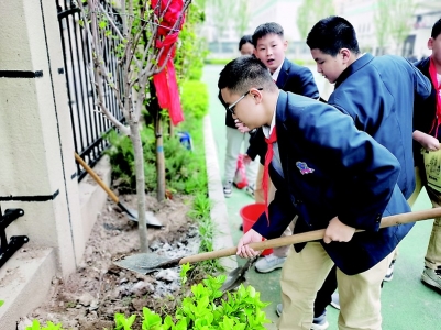 挖坑、移株、填土、施肥、浇水……近日,太原市万柏林区泰华实验小学六年级全体学生在美丽的校园种下一棵棵玉兰树,埋下沉甸甸的心愿瓶,勉励自己,感恩母校。同学们用特殊的方式,将自己对同学、老师、学校的美好记忆,以及拼搏的汗水、努力的模样,化作一抹青绿,栽种在母校的怀抱,勉励自己在未来的道路上能像小树一样向下扎根,向上生长。 记者田勇通讯员晁敏摄