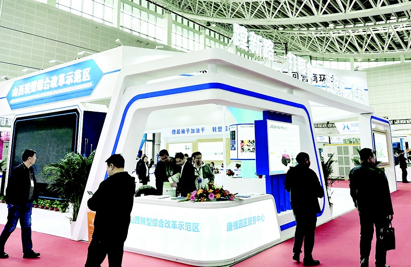 在综改示范区展区前,不少观展嘉宾纷纷驻足咨询,咨询体验、洽谈合作。为展示综改示范区在高端装备制造、能源工业节能减排等方面取得的成果,综改示范区唐槐电子与装备制造园区服务中心专门组织天地煤机、潞安化工、太重煤机、虹安科技、精英数智、向明智控、科达自控等10家入区企业参展,集中展示各企业在煤炭采掘、能源工业节能减排、智慧矿山等领域的高新技术成果和最新产品。
