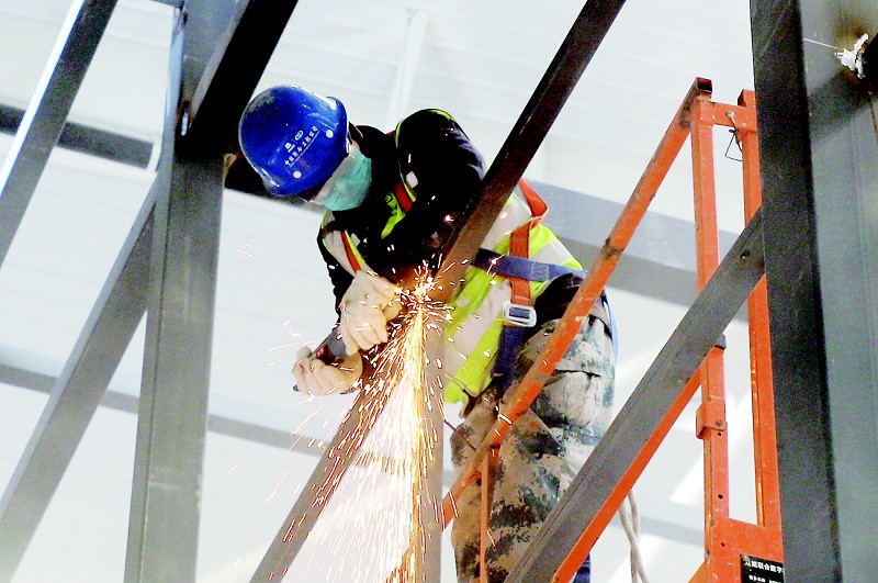 走进该项目大型联合车间,自走车、吊车、空中作业车等施工车辆有序穿梭,金属切割机“鸣叫”,电焊机弧光闪烁,数百名工人师傅正忙碌在各自的工作区域紧张地安装各种设备和管道设施。“目前,已有23家设备供货单位进驻项目开展设备安装,接下来还将有更多的单位进驻。”项目现场负责人说道。