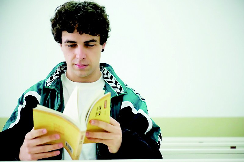 图②4月17日,胡里奥在西班牙马德里自治大学的课堂内阅读《诗经》。 新华社记者 孟鼎博摄