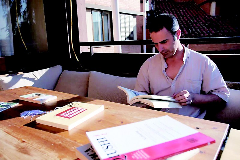 图③4月18日,米格尔在西班牙马德里的家中读书。 新华社记者 孟鼎博摄