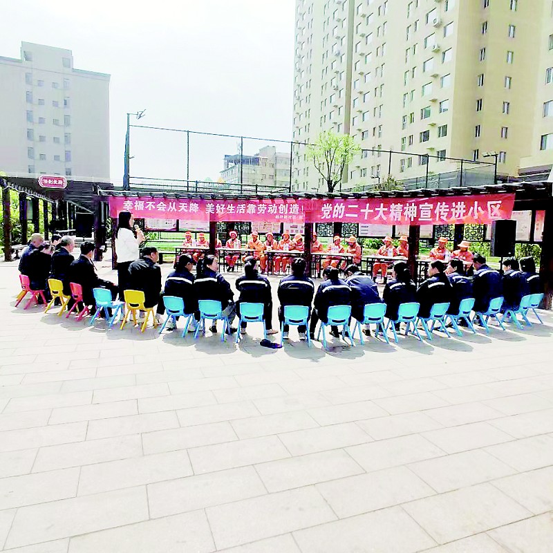 活动现场,大家围坐在一起交流感想,小区支部书记说:“作为一名退休党员,我将认真学习党的二十大精神,以实际行动践行志愿精神。今后,我将当好党建引领的‘排头兵’、群众的‘贴心人’和小区治理的‘主力军’,让更多群众感受到党的温暖。”