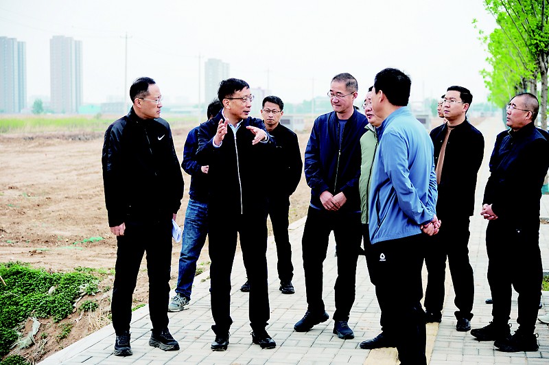 在潇河园区项目现场,范兆森边走边看、边问边议,通过现场察看、听取汇报等方式,详细了解园区重点项目进展及当前面临的困难和问题,现场办公协调解决项目推进过程中的难题,提出有针对性的指导意见和要求。