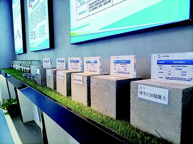 在破碎生产区,机械流水线有条不紊运行。破碎设备、分拣设备、筛选设备等根据物料的尺寸、质量等不同的特点,对建筑垃圾进行破碎、分拣、筛选后,变成再生骨料。“再生骨料作为原料,可以直接销售,也可以生产混凝土或免烧砖。”山安立德相关负责人介绍。