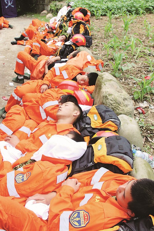 一个35人的突击队,集结的时候人数总是点不对。不是因为缺人,而是总能多出那么几个。我当时被任命为突击队长,心里清楚是太多的战士不顾个人安危想到茶坪抢救群众。“新兵都给我下来!”时间紧迫,我终于忍不住发火了。看到我这个样子,几名新战士才心有不甘地走出队伍。临出发前,我再一次看了看这些队员,他们的脸上没有丝毫的畏惧,眼睛里闪烁出异常坚定的光芒。我们每人携带两天的干粮、一些御寒的衣服和破拆工具,人均负重35公斤以上,向着莽莽大山,向着茶坪前进了。一名突击队员悄悄地将手机塞给留下的队员,并小声嘱咐说:如果三天没有我们的消息,你一定将这条短信给我发出去。