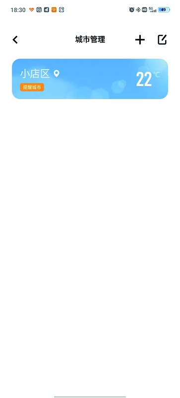 2.进入城市管理后,点击“+”选择要关注的城市。