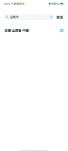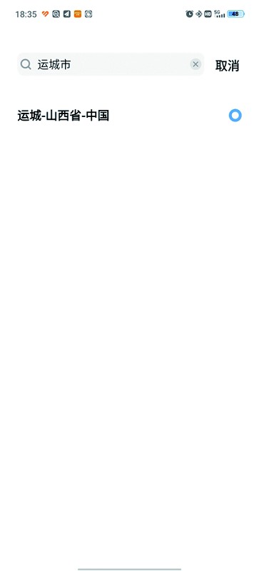 以关注运城市天气为例,在搜索栏中输入 “运城市”,点击搜索结果,自动关注成功。