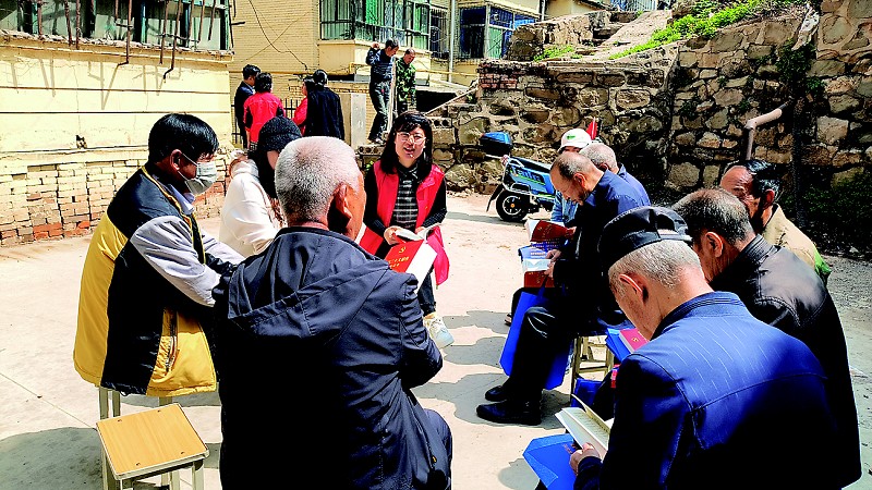 宣讲前,社区工作人员将《党的二十大报告辅导读本》送到第一网格党支部党员手中,大家迅速翻阅、学习。宣讲中,社区党委书记韩文君立足实际,结合社区当前重点工作,用通俗易懂的语言,向围坐在一起的党员居民们讲起了关于党的二十大精神的热门话题,并以河南四巷小区为例,结合人居环境整治、老旧小区改造等工作,潜移默化地传达了党的二十大精神,同时鼓励党员居民听党话、感党恩、跟党走,在党组织的坚强领导下,共建美好家园,共创幸福生活。