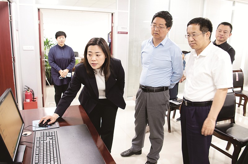 王辇奎一行来到综改示范区综合档案室,听取了档案管理工作的情况介绍,实地查看了数字档案馆系统演示,并参观了档案室、档案库房等,与工作人员就电子文件单套制归档和管理工作进行了深入交流。