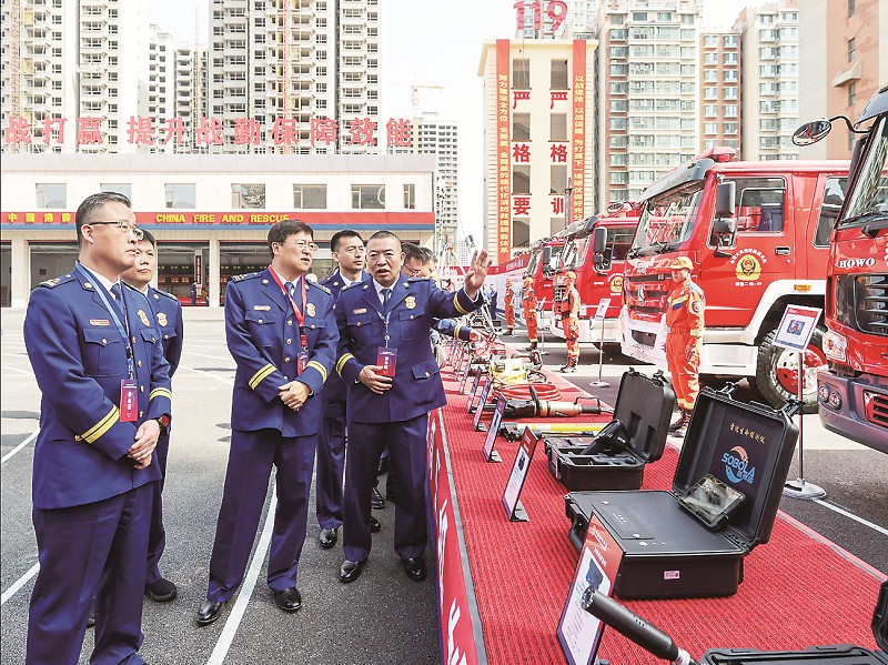 张华东指出,2023年是应急装备物资保障体系建设关键之年,召开全省现场会旨在检验《消防救援队伍应急装备物资保障体系建设纲要》贯彻成效,全力推动战勤保障体系建设走前列、作表率,努力为全国提供“山西样板”。各支队要牢固树立“打仗就是打装备,保装备就是保战斗力”的理念,不断提升应急装备物资模块化、信息化、机械化、智能化管理水平。要聚焦“与战勤保障响应同步、与基层队伍力量相称、与灭火救援实战衔接”的总目标,推动构建与“全灾种、大应急”职能任务相适应的现代化应急装备物资保障体系,真正服务好“主力军、国家队”建设,为圆满完成各项任务提供坚实可靠保障。