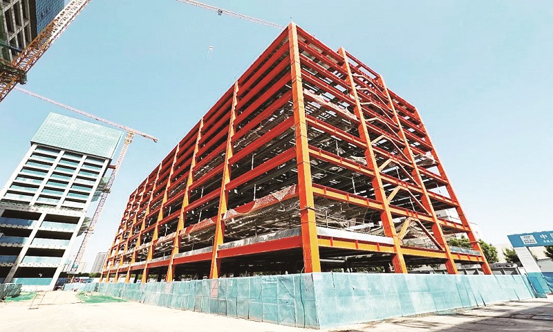 唐槐路城市智慧停车场项目钢结构主体顺利封顶