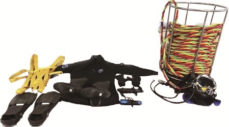 在救援人员长时间进行水下打捞救援时使用,具有水下通信功能,配备双人潜水通话系统,陆地通话系统,可实现三方通话。