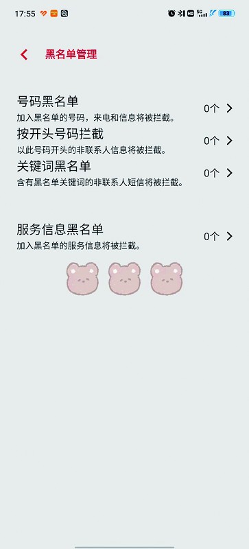 4.点击上一步的“黑名单管理”,就可设置拦截黑名单号码的电话及短信,还可设置按开头号码拦截、关键词拦截等。
