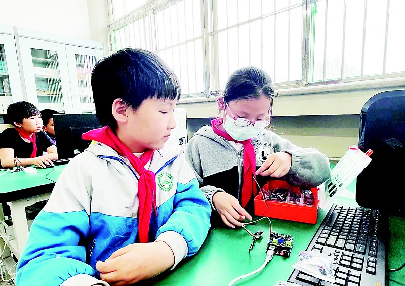 开源硬件作为一种开放、智能、灵活的数字化学习工具,是培养中小学生设计思维能力的重要载体。结合开源硬件的特点和优势,程序的可视化、模块化的特点,可以降低程序教学的难度,让学生实现“做中学,学中做”,有助于学生理解算法的结构和程序的执行过程,对于培养、发展学生的计算思维素养具有较好的促进作用。引导学生创新,提高学生动手实践的水平,可以使计算思维教学真正落地。 记者 王美如文/摄