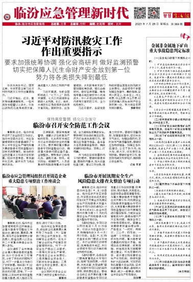 临汾市开展汛期安全生产风险隐患大排查大整治专项行动