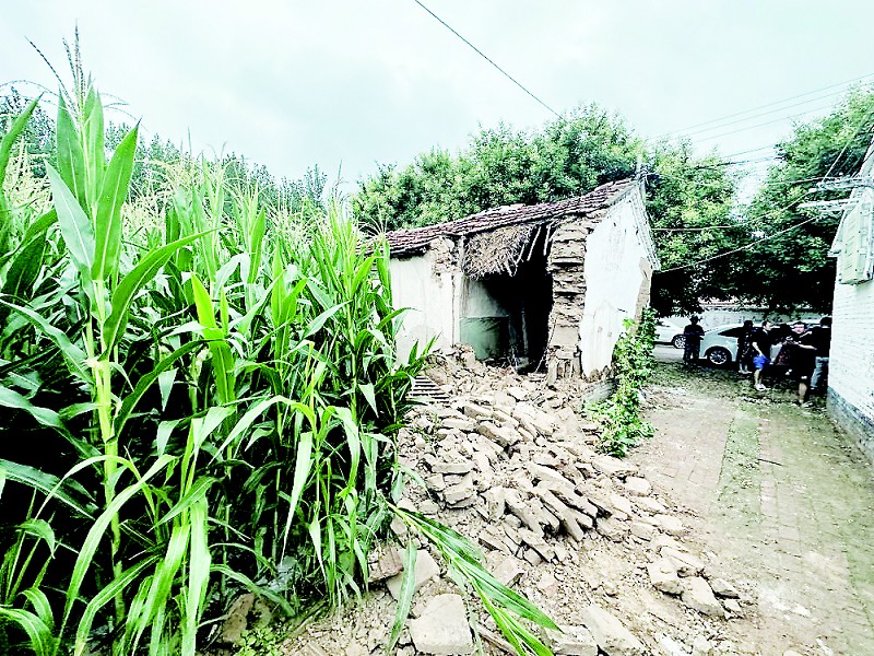 ①8月6日,在山东省德州市平原县王打卦镇北侯新村,一处老旧民房一角坍塌。